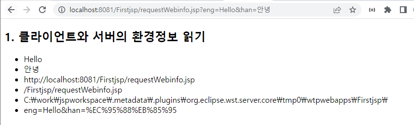 <a href="./RequestWebInfo.jsp?eng=Hello&han=안녕"> <!-- GET 방식으로 요청 -->