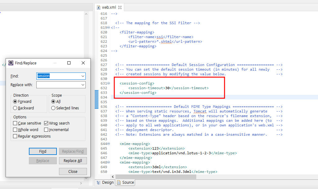servers -> web.xml 에 기본 유지값이 30분으로 지정 되어있음