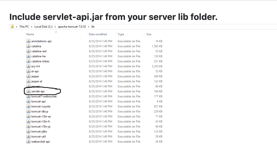 servlet-api.jar 파일을 프로젝트 web-inf - lib 폴더로 복사