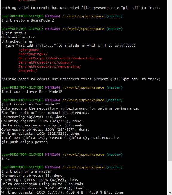 Git에서 파일을 추가하려고 할때 git status로 상태를 확인해보면 추가할 대상으로 파일이 인식이 안될때가 있는데, 아래와 같이 --force 명령어를 사용하여 추가하면 목록에서 보이고 commit을 할 수 있게 된다