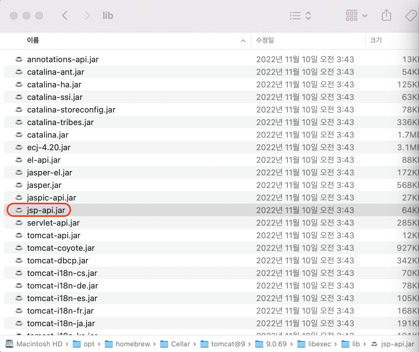 톰캣 lib에 jsp-api.jar 파일 빌드
