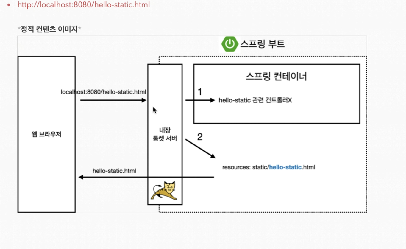 정적 컨텐츠 - 서버 동작 없이 파일을 웹브라우저에 그대로 내려줌