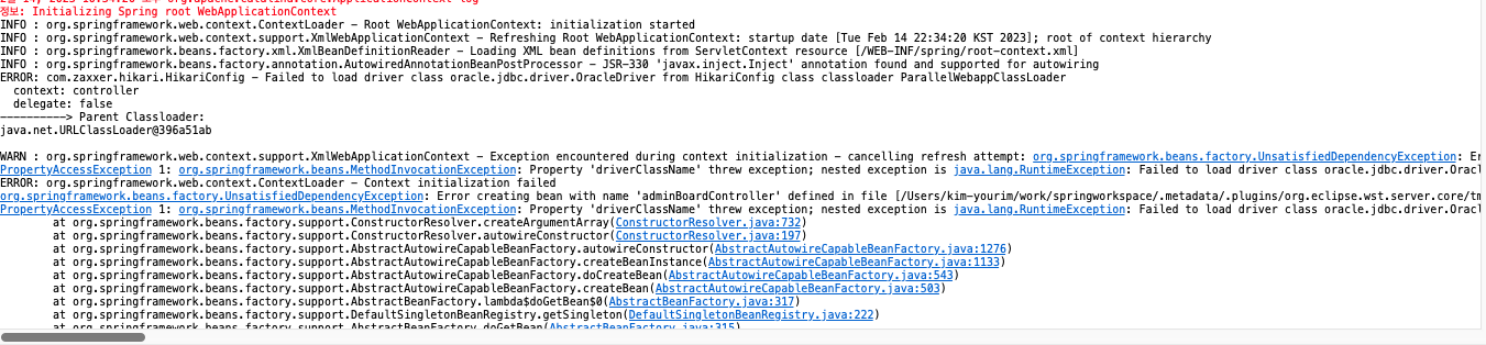 ERROR: com.zaxxer.hikari.HikariConfig - Failed to load driver class oracle.jdbc.driver.OracleDriver from HikariConfig class classloader ParallelWebappClassLoader context: controller delegate: false----------> Parent Classloader:java.net.URLClassLoader..