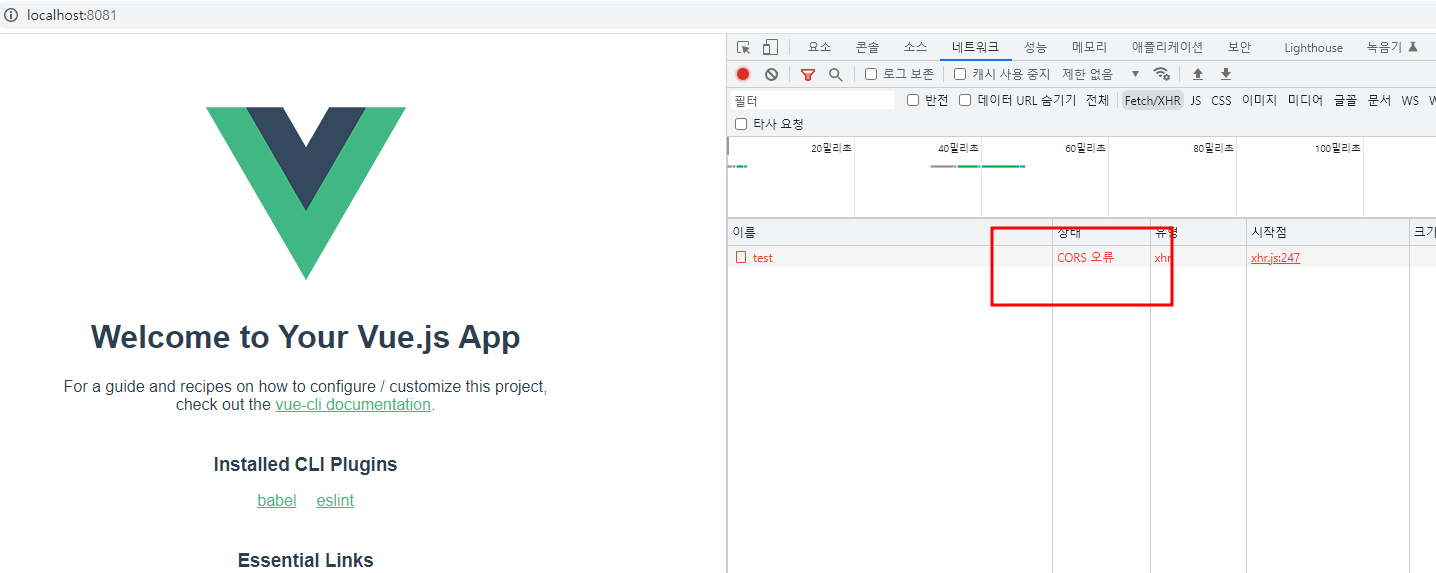 예를들어 client는 8080포트로, server는 9000포트일때, 또는 로컬에서 다른서버로 호출할때 발생한다.