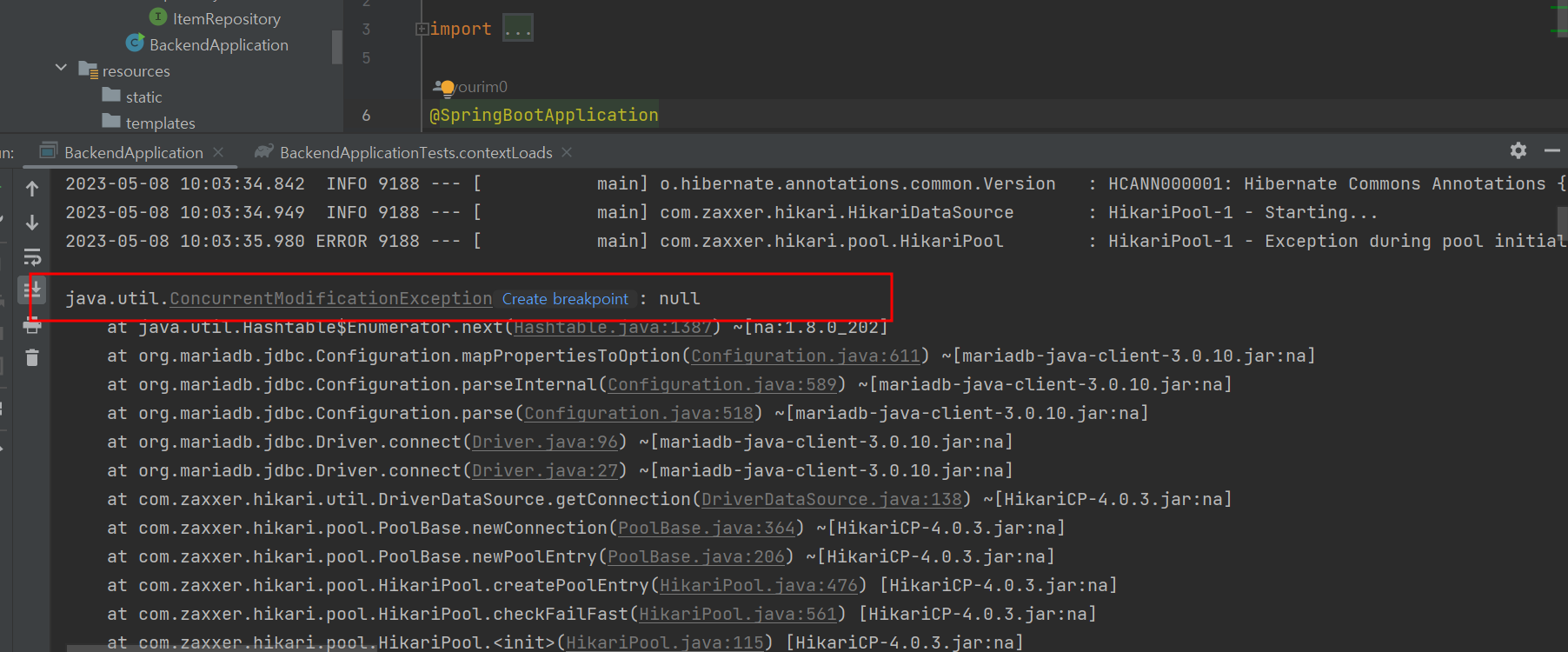 JPA - MariaDB 세팅 중 발생