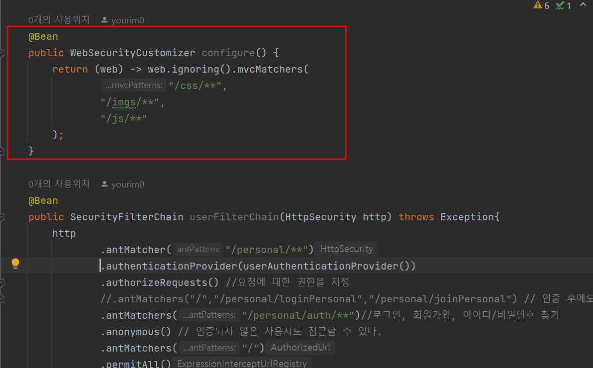 SecurityConfig 파일에서 js, css, image 설정은 보안설정 영향 밖에 있도록 설정해준다.