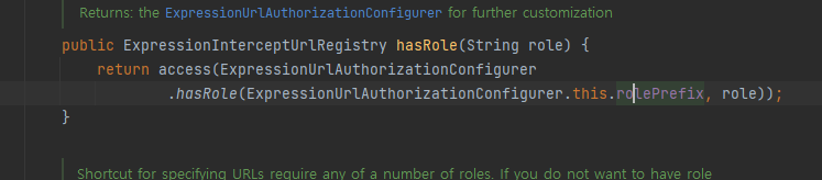 ROLE_ 은 자동생성되기 때문에 prefix의 ROLE_ 을 쓰지않아도 된다.