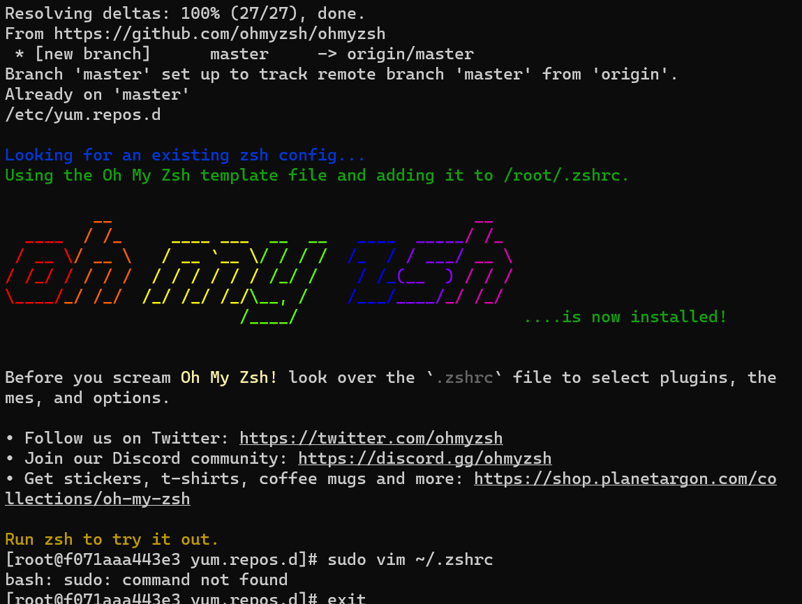 curl -L https://raw.github.com/robbyrussell/oh-my-zsh/master/tools/install.sh | sh