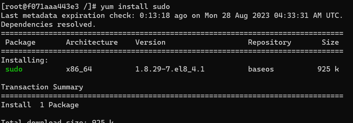 * 위 명령어 입력 후 "sudo:command not found " 발생