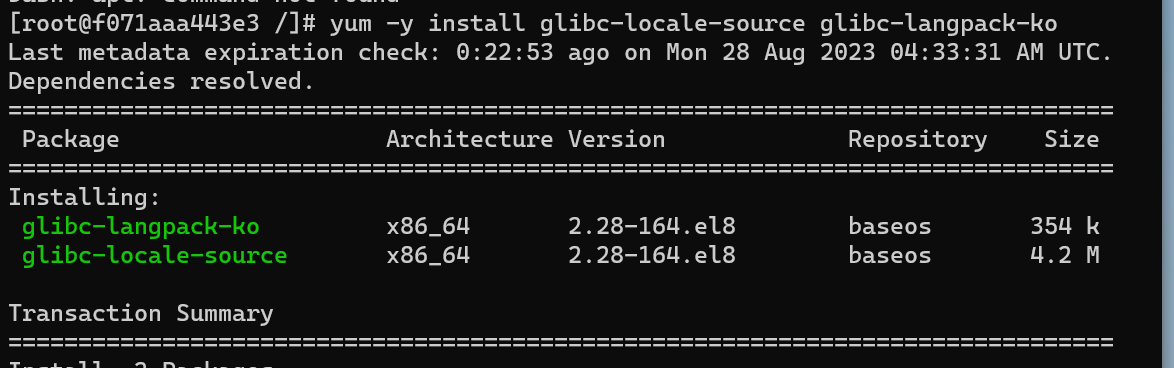 yum -y install glibc-locale-source glibc-langpack-ko 설치 yum -y install glibc-locale-source glibc-langpack-ko