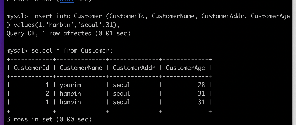 --개수와 티입을 잘 맞췄기 때문에 지정하지 않은 데이터는 자동으로 null이 들어간다