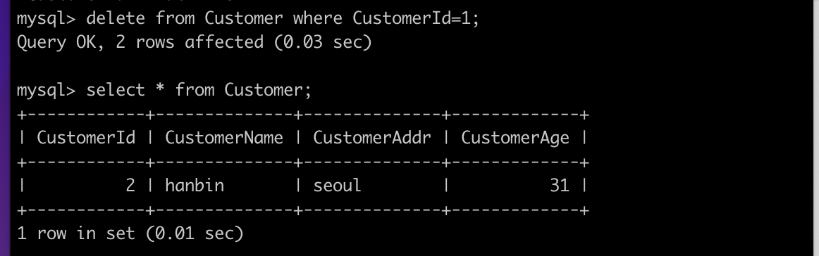 --조건절을 사용하지 않으면 모든 데이터가 삭제된다.
