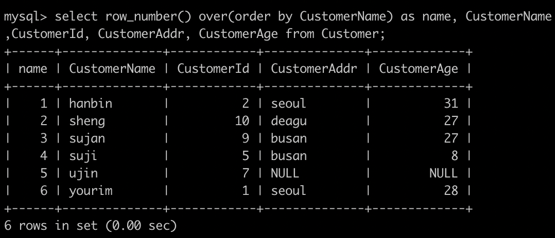 over (partition by 컬럼명, order by컬럼명, .. as 별칭